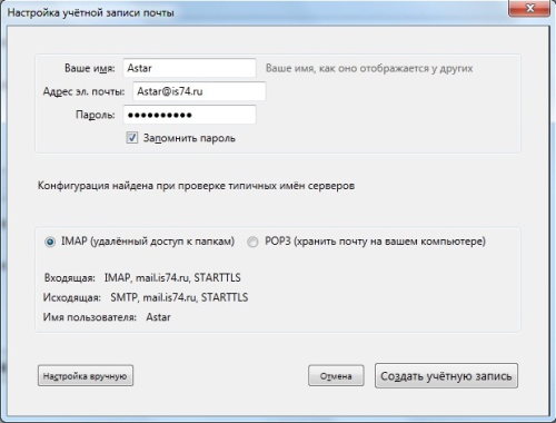 9. Почтовый клиент Mozilla Thunderbird настроен для работы по протоколу IMAP, и готов к использованию.