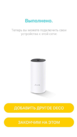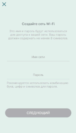 6. Придумайте название сети и пароль и нажмите кнопку "Следующий". Теперь Вы можете подключиться к новой сети. В приложении далее выберите "Добавить другое Deco".